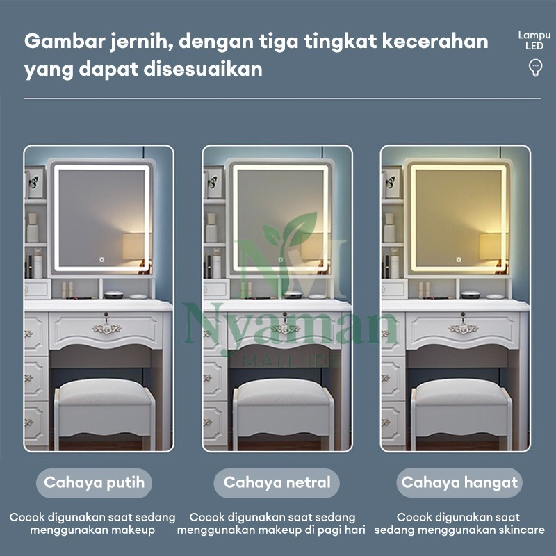 NYAMAN Meja Rias Simpel Dan Cantik Dengan Lampu Rias Led Terang Dan Pintu Cermin Geser Built-In