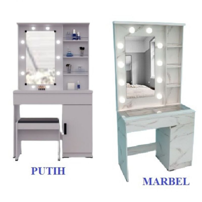 Meja Rias Minimalis Dengan Lampu Nempel Ukuran 80x50x155