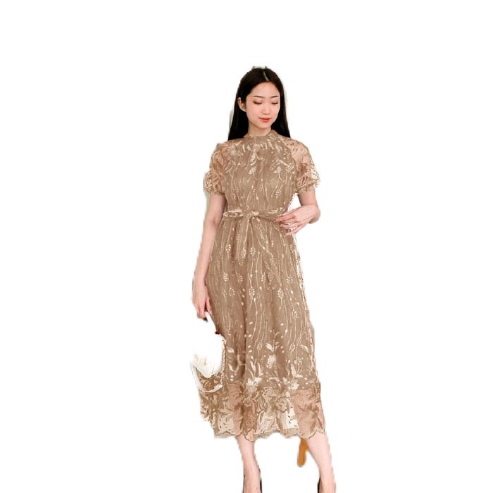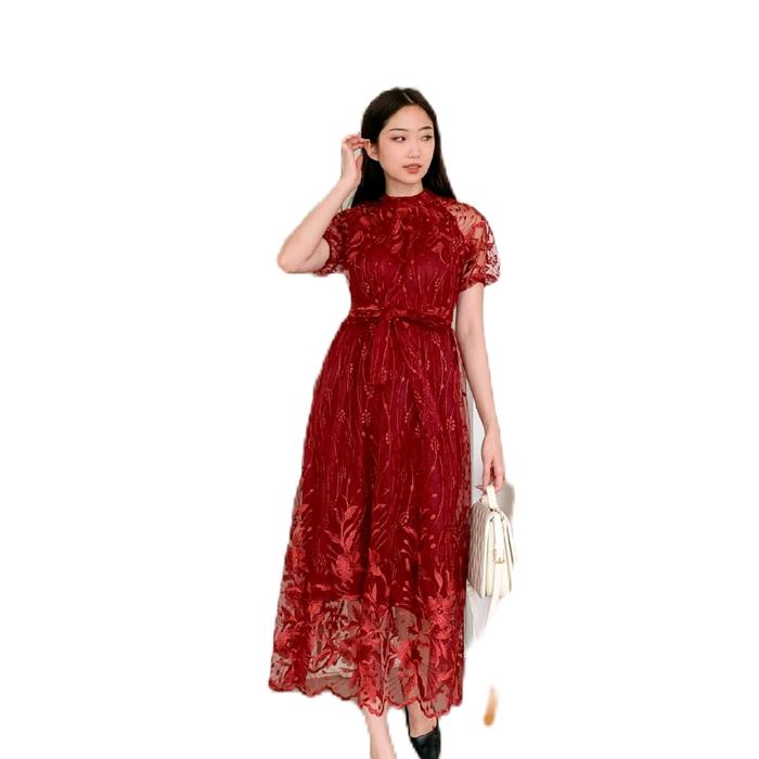 Wb Dress Annabelle 4 Ukuran M L Xl Dan Xxl Dress Imlek Dress Natal Kondangan Brukat Anggun Anggun - Maroon, M