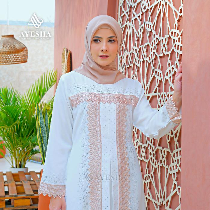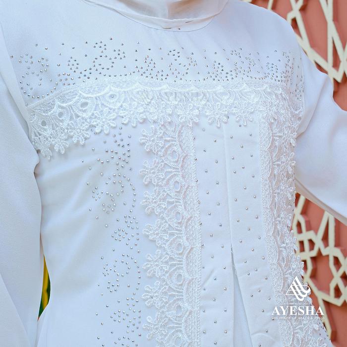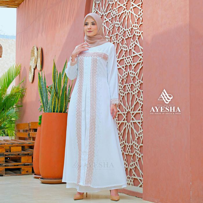 Gamis Putih Wanita Abaya Turkey Mewah Elegan Premium Terbaru - Renda Putih, M
