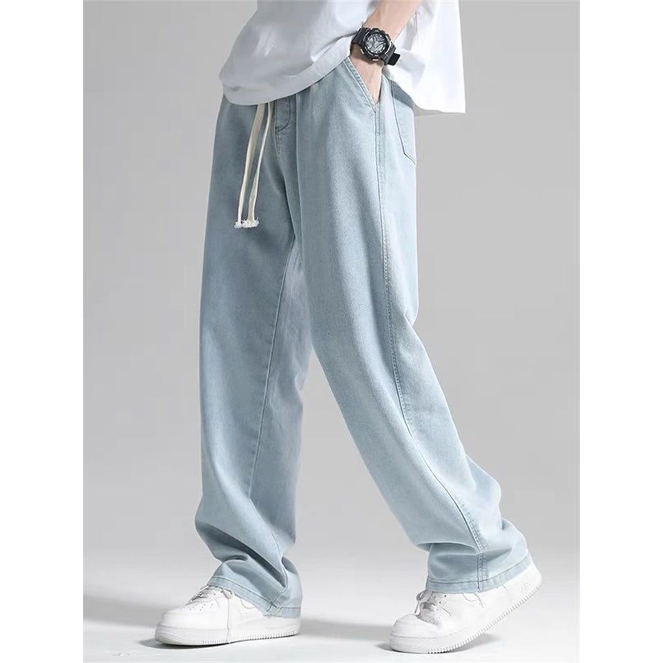 Celana Jeans Pria Panjang Gombrang Pinggang Karet - Celana Jeans Korea Style Loose Straight - Celana Jeans