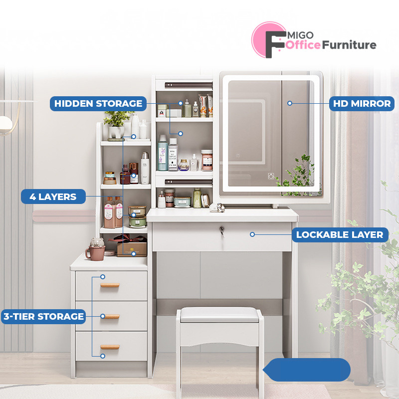 Meja Rias Aesthetic/Meja Rias Led/Meja Rias Lampu/Meja Rias Minimalis/Meja Rias Sliding/Meja Make up
