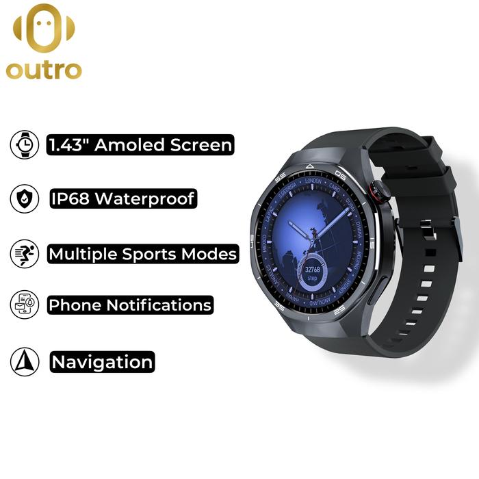 Outro Hx5 Pro Smartwatch Bluetooth | 1Gb Rom | Ip68 Waterproof | Sports Mode | Nfc | Navigation - Hitam