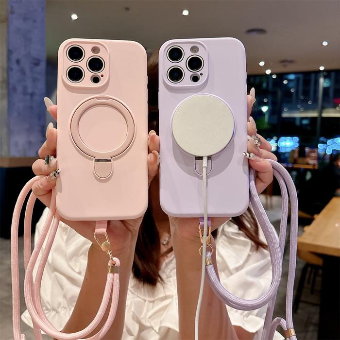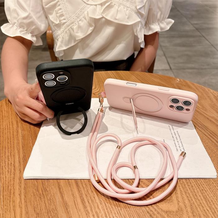Crossbody Lanyard Magnetic Holder Phone Case Untuk Iphone 16 15 14 13 12 11 Pro Max Dengan Long Strap Necklace Dudukan S