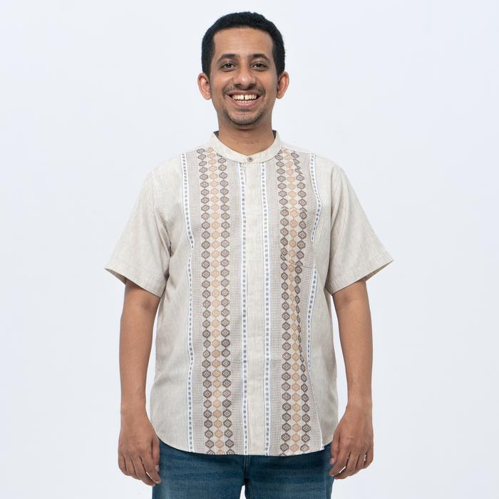 M231 Kemeja Pria Koko Habib Jafar Pendek 0355 - M, Abu
