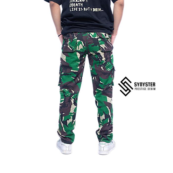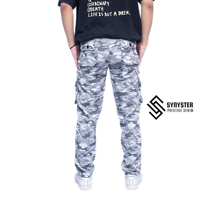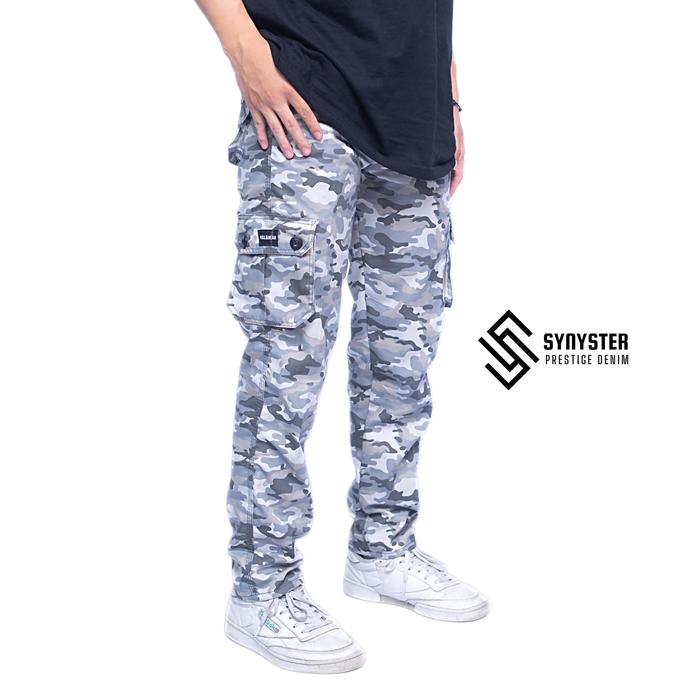 Celana Cargo Panjang Loreng Army Pants Casual Doreng Kimpul Twill - Nyaman & Tahan Lama - Putih, 27/28