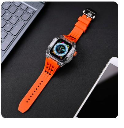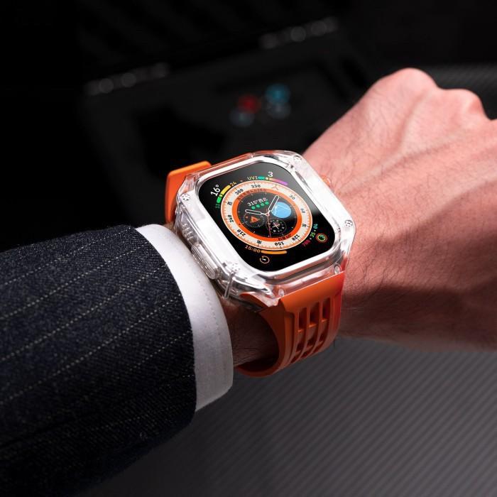 Ice Transparant Strap Case Free Anti Gores Untuk Apple Watch Ultra Series 4 5 6 7 8 9 Se 45Mm 44Mm Modification Casing S