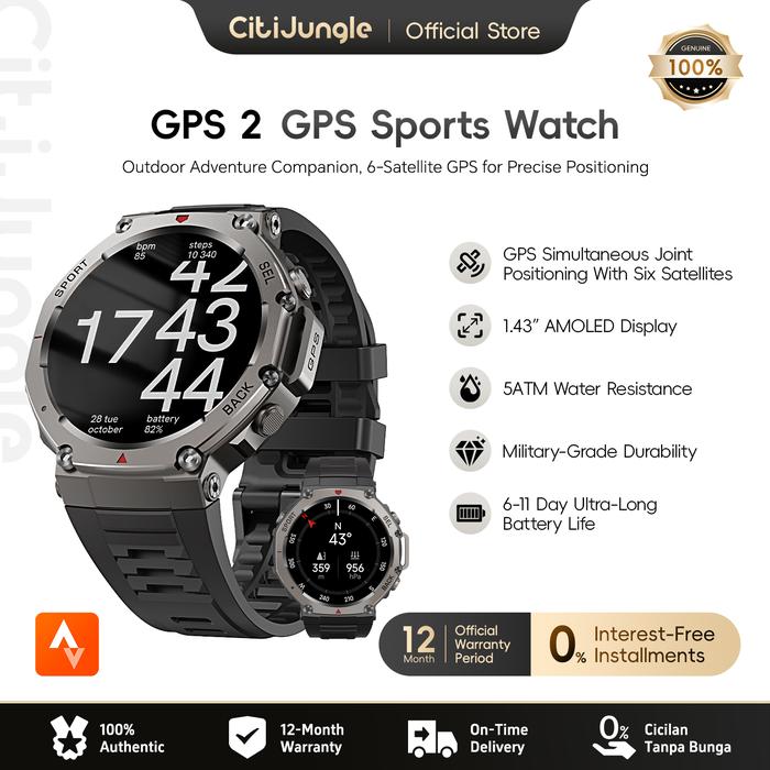 【Produk Baru】Citijungle Smartwatch Gps2, Layar Amoled Hd, Gps Terpasang, Tahan Air Hingga 50 Meter 5Atm, Daya Tahan Ba