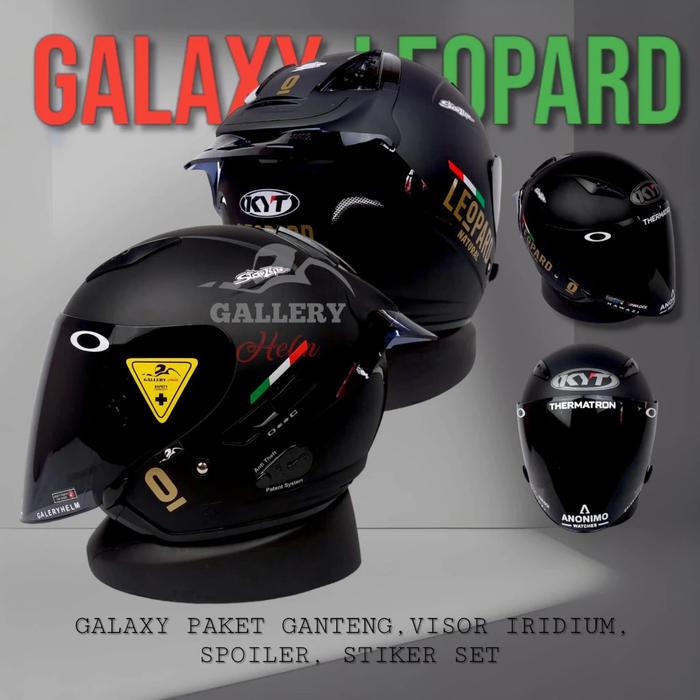 KYT GALAXY FLAT R PAKET STIKER LEOPARD HITAM DOFF HELM HALF FACE Kaca Motorcycle - Visor Iridium Red