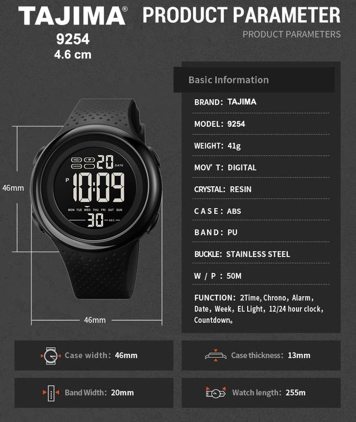Jam Tangan Pria Digital Sport Tajima 9254 Water Resist Original Garansi 1 tahun + Free BOX Men