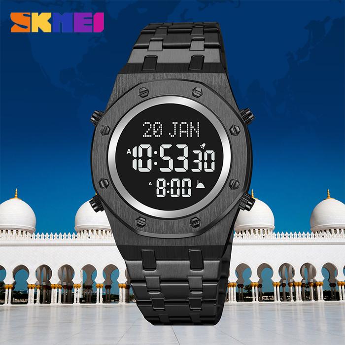 Jam Tangan Pria Digital Muslim Kiblat Tali Stainless SKMEI 2043