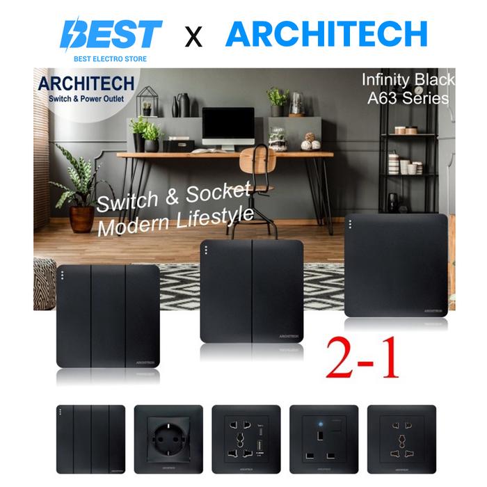 Saklar Lampu Rumah Architech Infinity Black A63 2.1 Series New - 2 GANG 1 ARAH