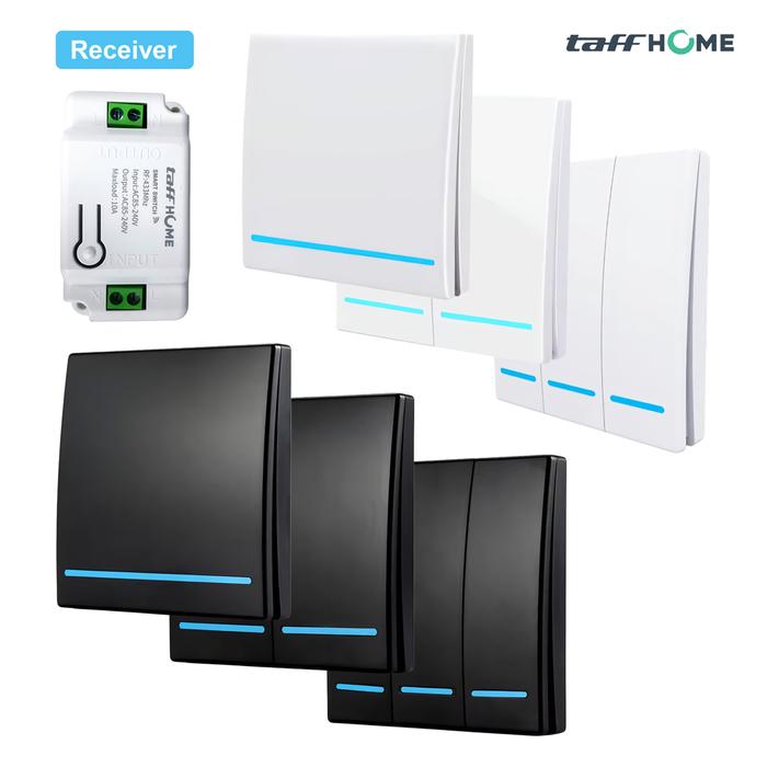 Set Saklar Lampu Wireless Switch RF 433Mhz With Receiver Plastik Kabel - Hitam 1 Gang