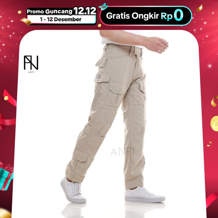Anfi Celana Cargo Pria Outdoor Series Traiflex Bahan Cotton Ribstop Tr Celana Panjang Hitam Abu Nyaman - Krem, 28