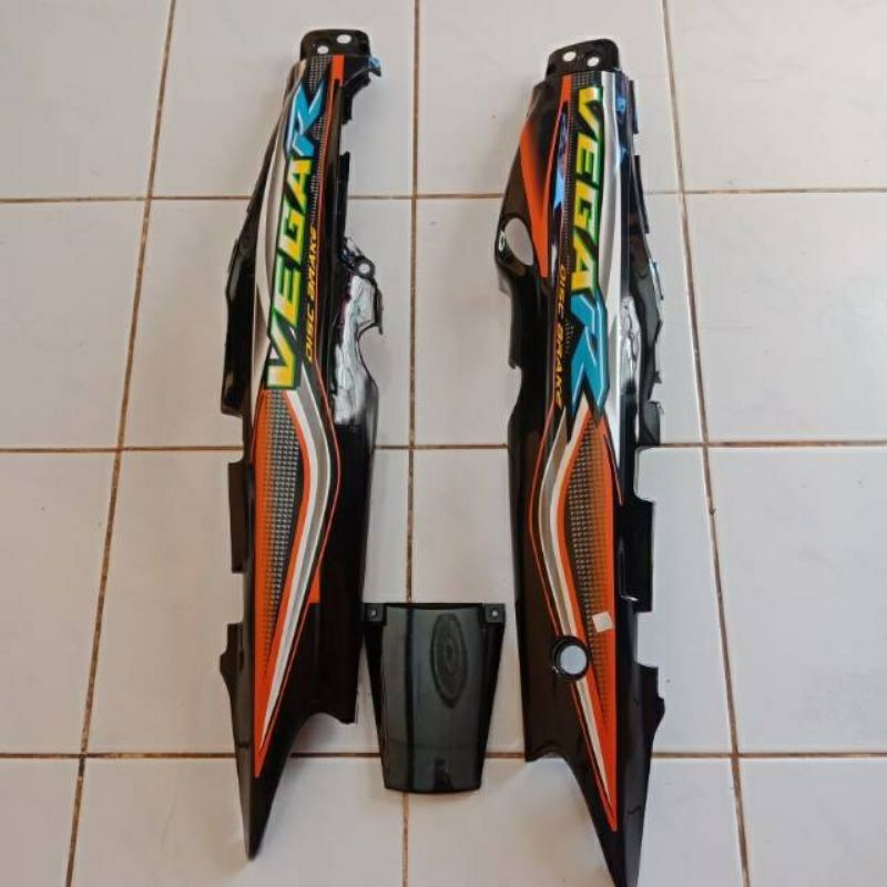 Cover Body Bodi Samping Kanan Kiri Vega R Lama Old plus Striping Hitam Orange 2004