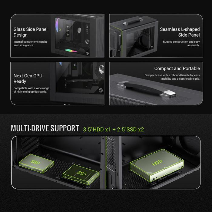 Casing Pc Komputer Gamemax Game Max Spark Air Bk | Micro M-Atx Case | Tanpa Fan | Black Hitam