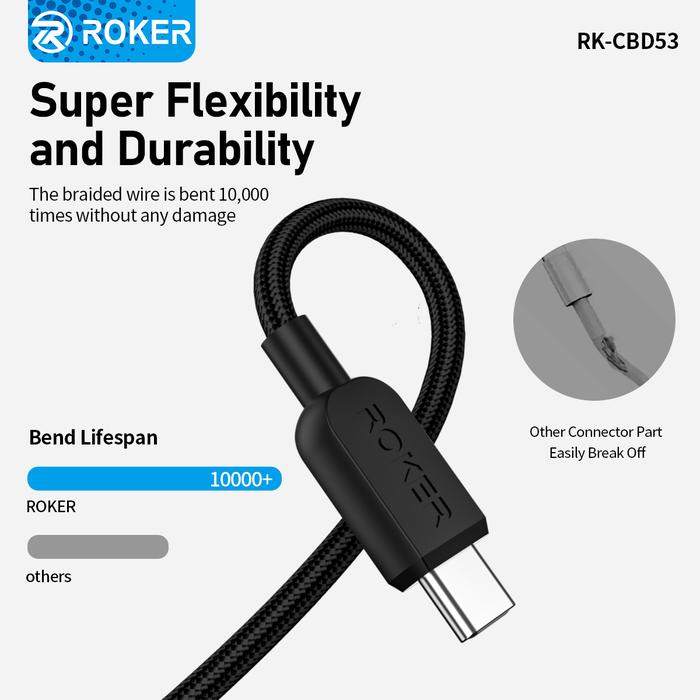 Roker Kabel Roker Boxy 3A 5A Kabel Data / Charger Rk-Cbd53 Panjang 1000Mm Fleksibel Untuk Laptop & Transfer Data Micro U