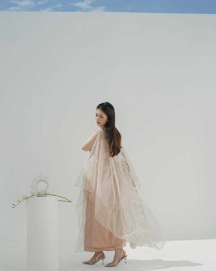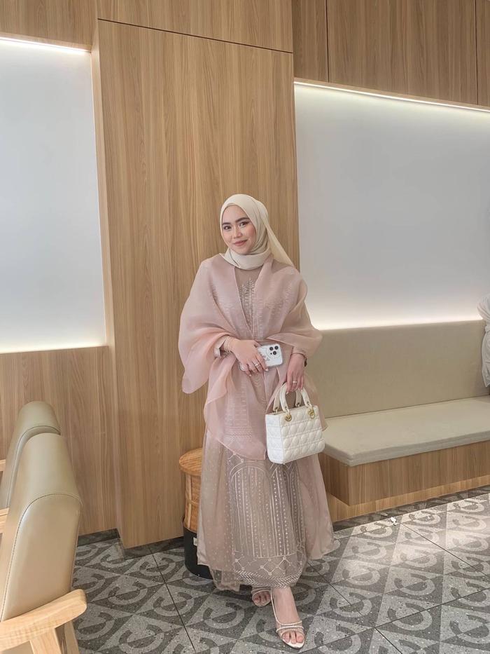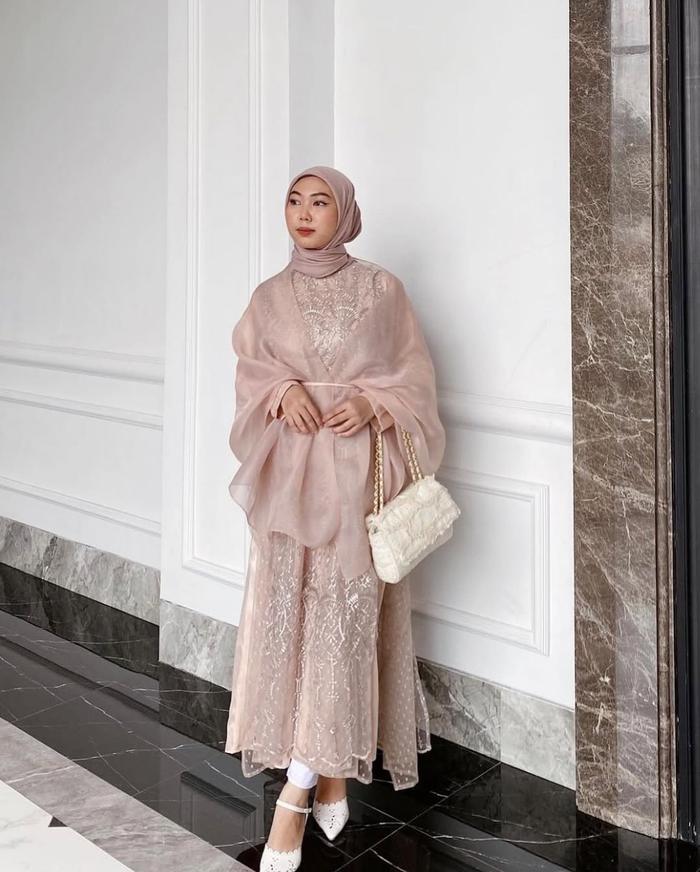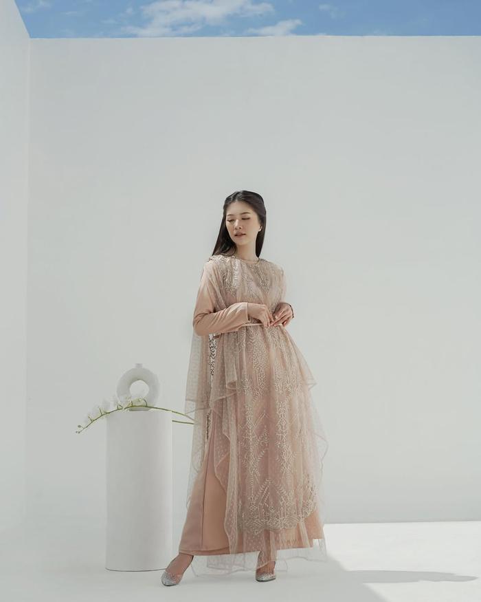 Florence Dress Pesta Gamis Brukat Premium Kombinasi Tulle Dot Dress Remaja Dewasa Wanita Kekinian - Nude, M
