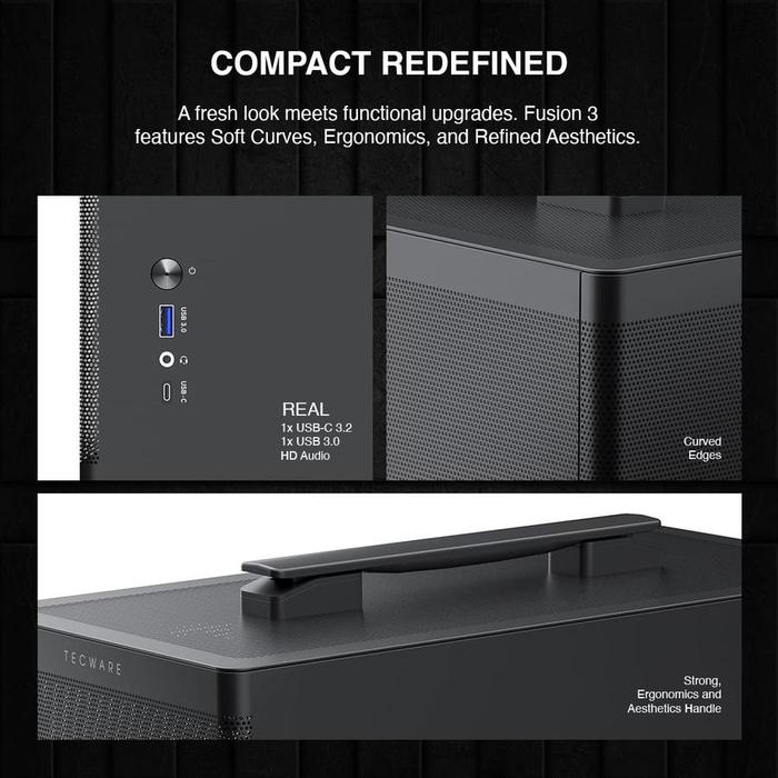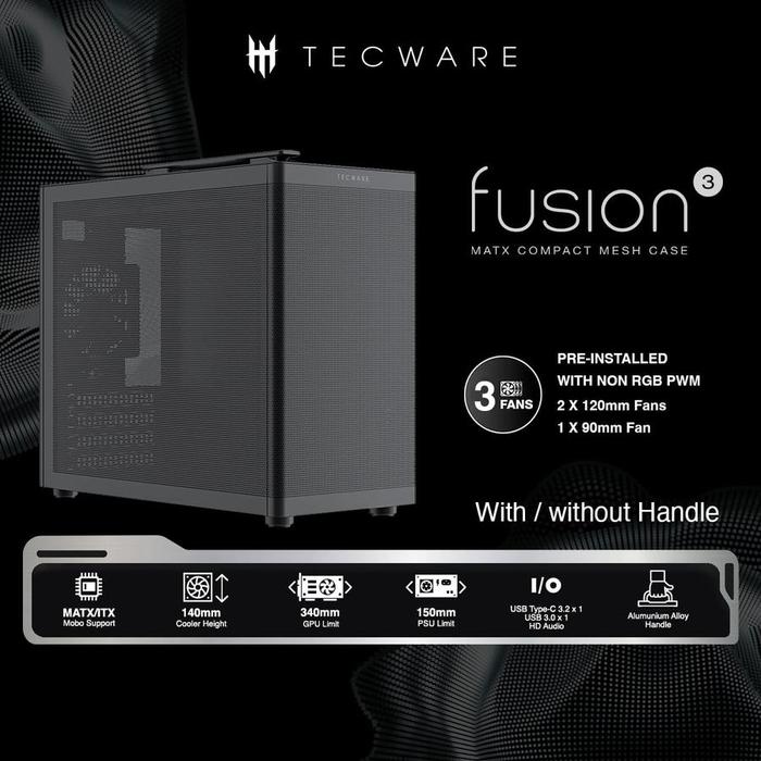 Casing Pc Komputer Tecware Fusion 3 Mesh | Mid Tower | Micro M-Atx Case | 3 Fan Black Hitam