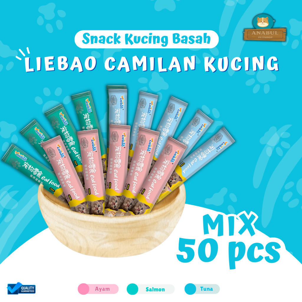50 SNACK CREAMY MIX, 50 Liebao Mix, 50CatNutrition Mix, 50 Sosis Mix, 50 Liebao Tuna, 50 Liebao Ayam, 50 Liebao Salmon, 50CatNutritionTuna, 50CatNutrition Ayam, 50CatNutritionSalmon