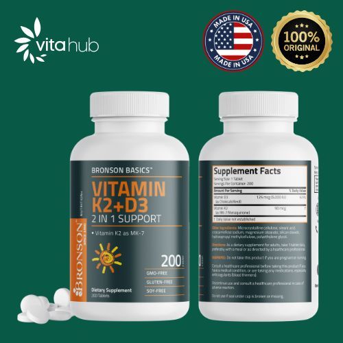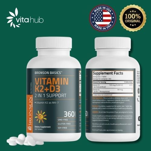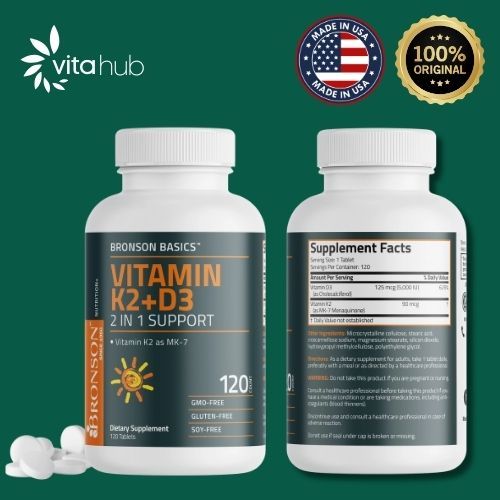 VITAMIN K2 + D3 BRONSON BASICS 5000IU - 120/200/360TABLETS