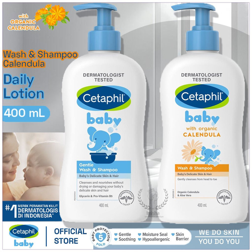 Cetaphil Baby Daily Lotion Oil Shea Butter 400ml + Baby Wash & Shampoo with Organic Calendula 400ml dengan Glycerin
