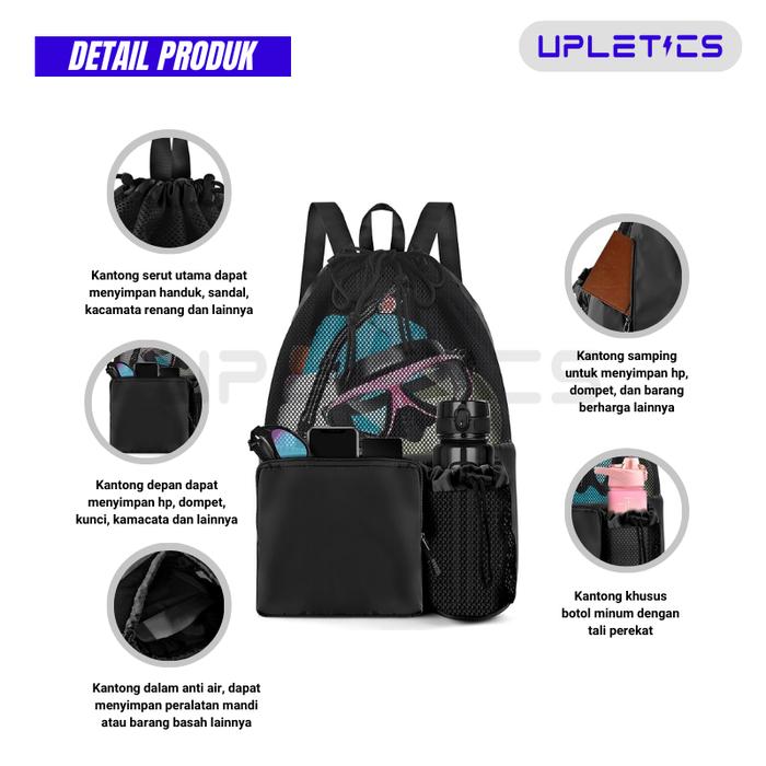 Upletics Aquamesh Drawstring Bag | Tas Ransel Olahraga | Tas Serut Olahraga Gym Berenang Snorkeling Futsal Basket Travel