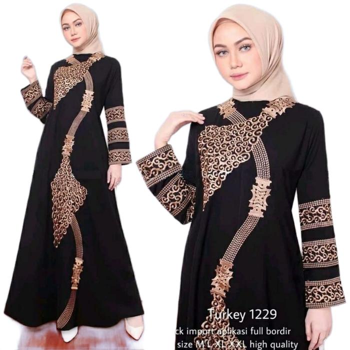 Abaya Turkey Terbaru Gamis Saudi Bordir Turki Dress Hitam Mewah Murah Premium Arab Wanita Muslim Syari Maxi Cantik - F
