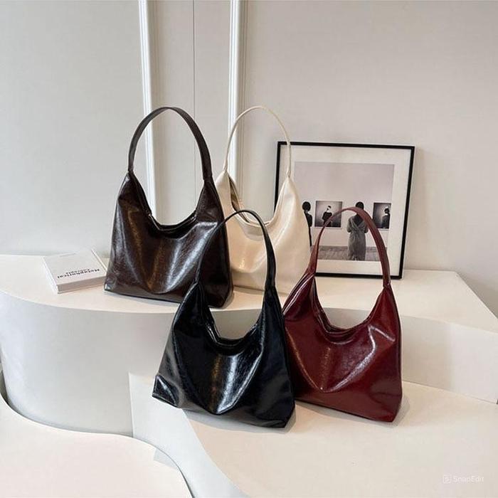 Totebag Aestetic Underarm Bag Kulit Premium Terbaru Untuk Wanita Kuliah - Black