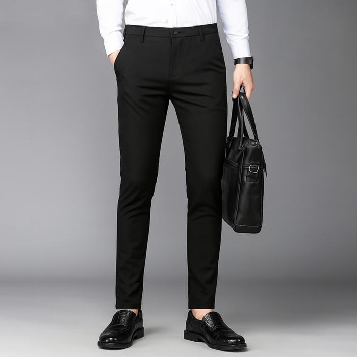 Nadavo - Celana Formal Pria Slim Fit Bahan Woll Premium Tampilan Elegan - Hitam, 27