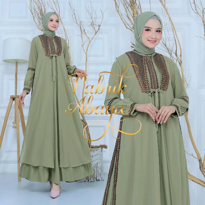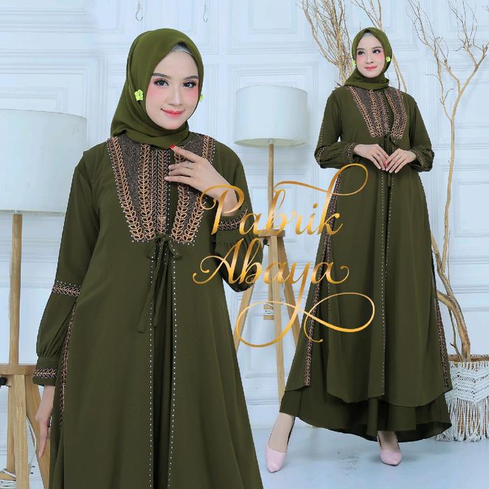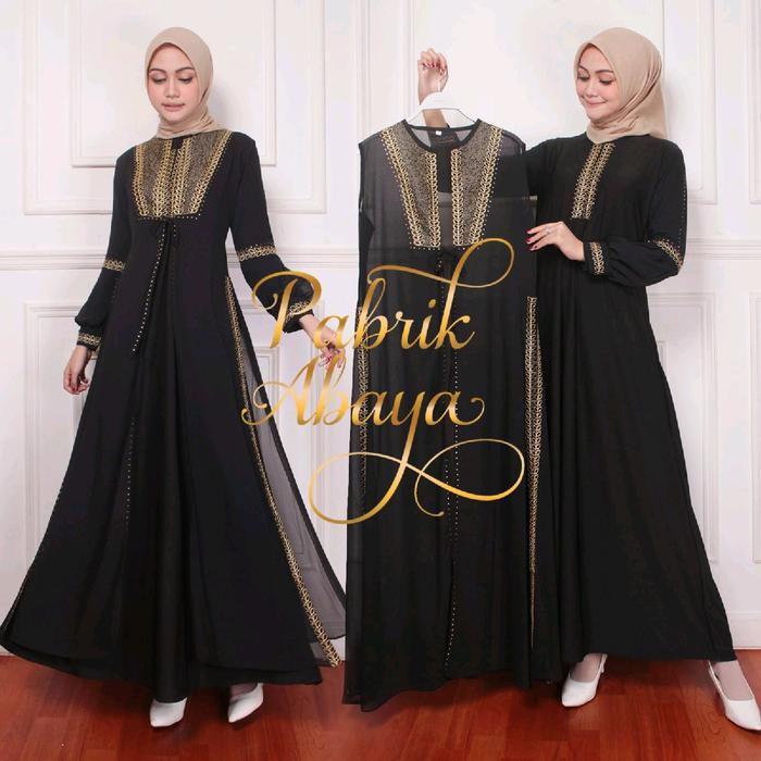 Gamis Abaya Turkey 5061 Muslim Arab Turki Mewah Bordir Ceruty Outer Tangan Hitam Wanita Dress Maxi Ceruti - Bordir Cokla