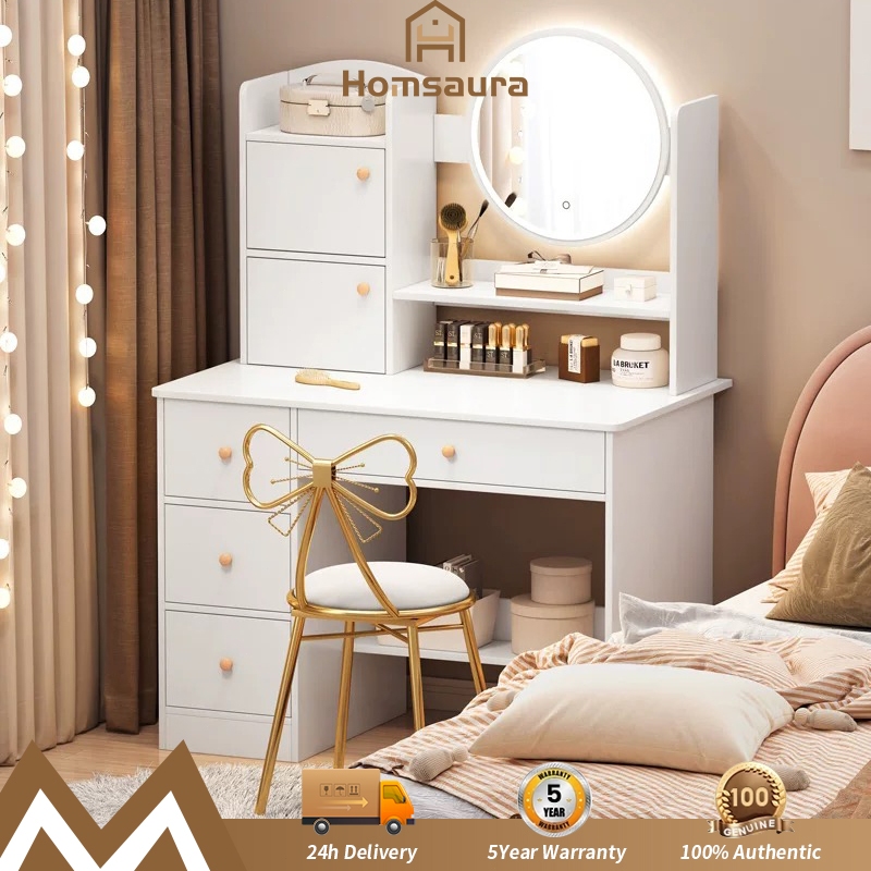 Homsaura Set Meja Rias Kursi Pita/Lampu LED/Minimalis/Murah/Modern/Aesthetic