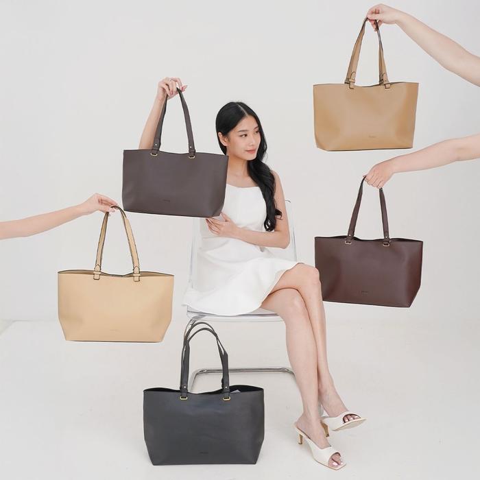 Verite Tas Wanita Raya Tote Bag Multifungsi Muat Laptop 15 Inci & Tumbler - Black