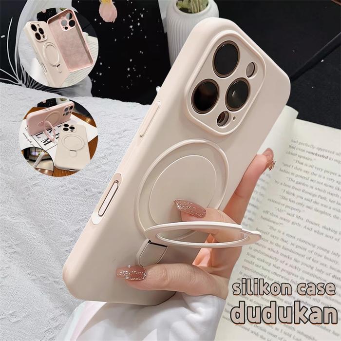 Premium Dudukan Magnetik Silikon Casing Untuk Iphone 16 15 14 13 12 Pro Max 11 Mewah Magnet Lembut Case Shockproof - Pin