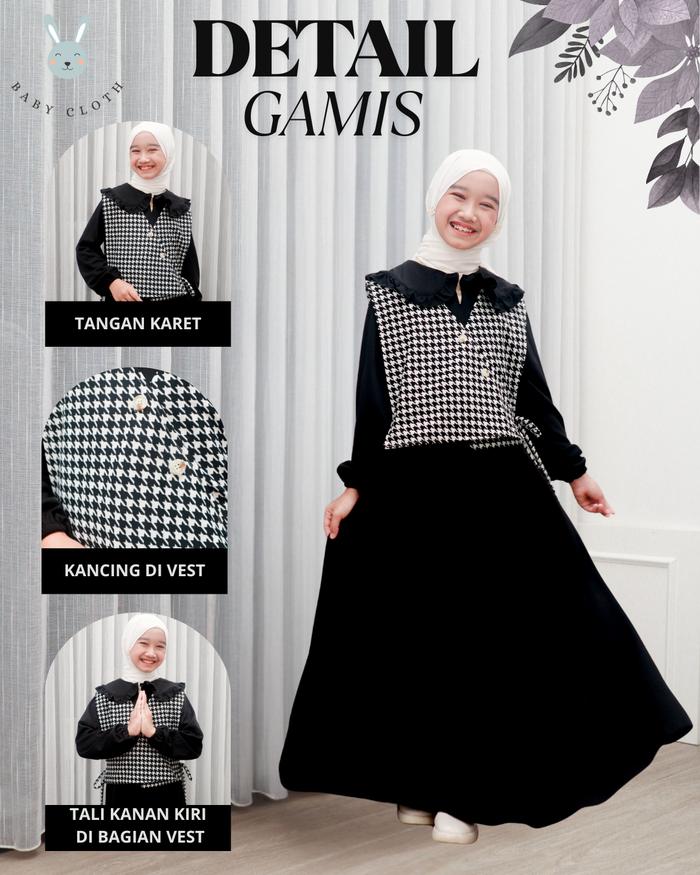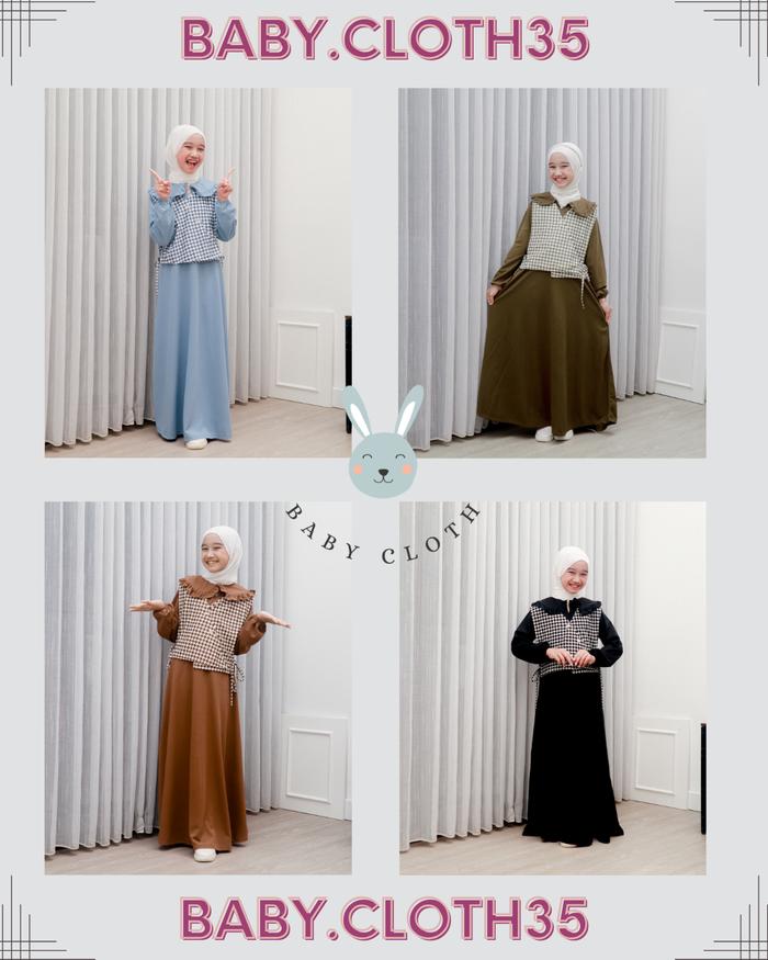 Gamis Silvia Rompi Anak Smlxl Baby.Cloth Untuk Umur 3-14 Tahun Baju Muslim Panjang Printing Dress Syari Wanita Gamis