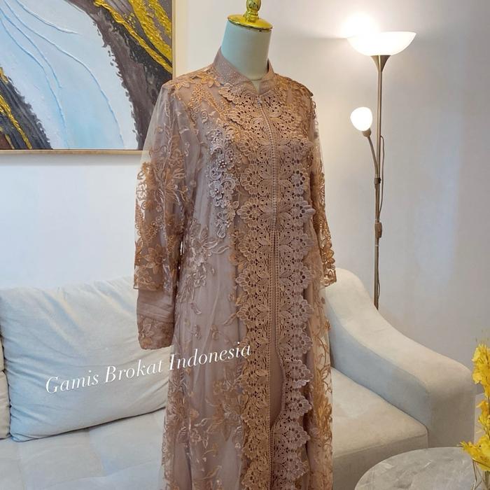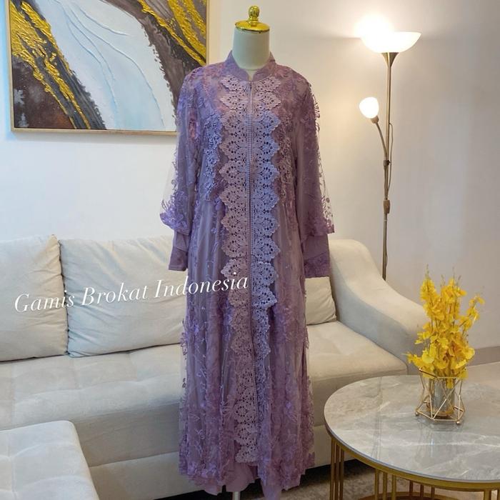 Dress Sandra Dewi M095 Outer Mewah Rompi Lepas Brokat Pesta Dan Acara Resmi Lainya Muslim Wanita Gamis Kondangan Lebaran
