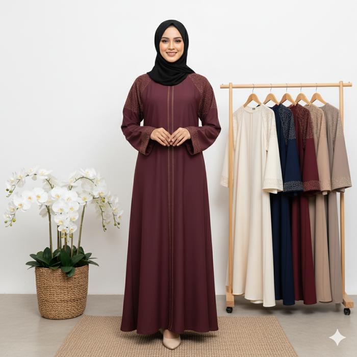 Ds - Abaya Turkey Fashion Muslim Terbaru Adem Nyaman Di Pakai Dengan Pilihan Warna Variatif Dan Desain Elegan - Marun, M