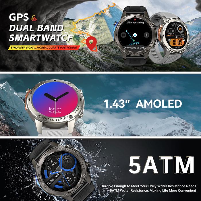 Skmei Dm56 Smartwatch Gps - Jam Tangan Pria & Olahraga Dengan Layar Amoled 1.43 Inci, Bluetooth, 5Atm Waterproof, S