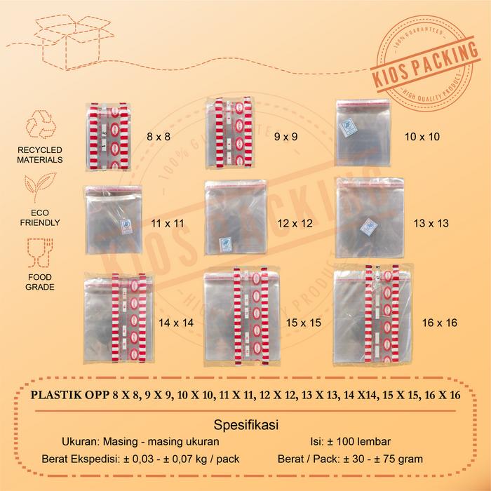 Plastik Opp Roti 8X8 9X9 10X10 11X11 12X12 13X13 14X14 15X15 16X16 Seal Bening Isi 100 Lembar / Plastik Lem Rekat Roti S