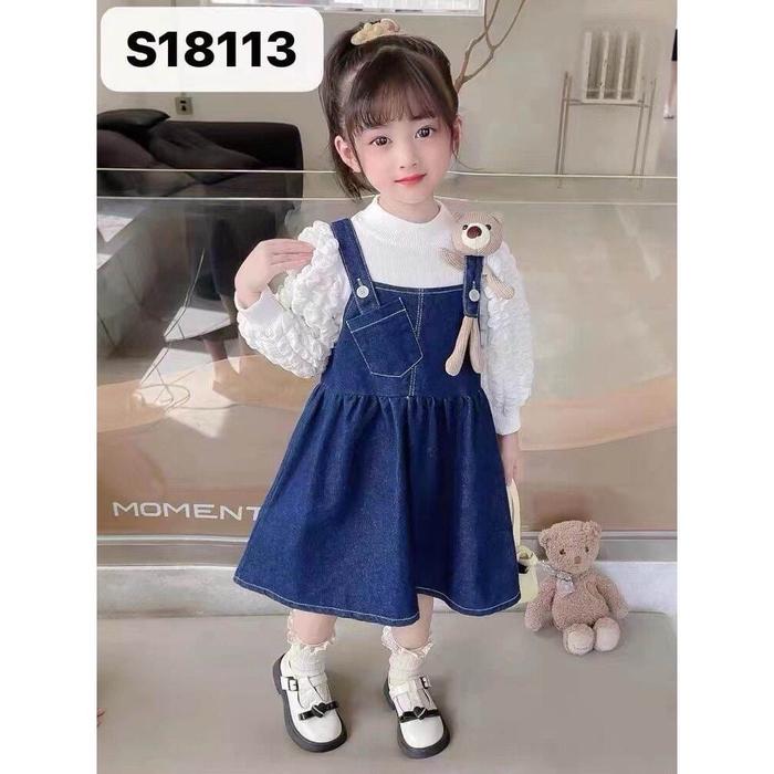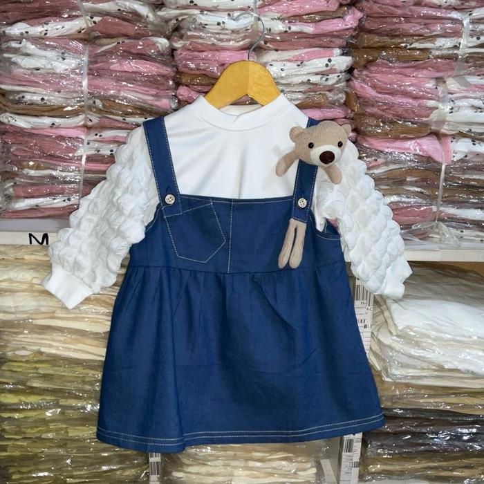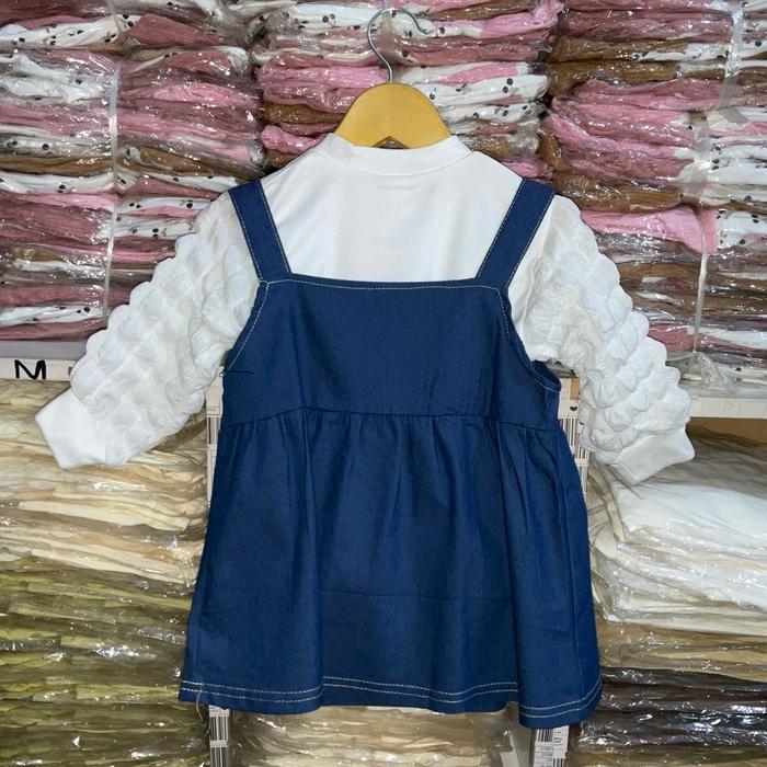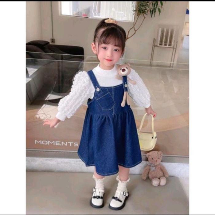 Belimom’S - Dres Overall 2In1 Fashion Anak Perempuan Motif Polos - Blue Denim, S 4-12 Bln