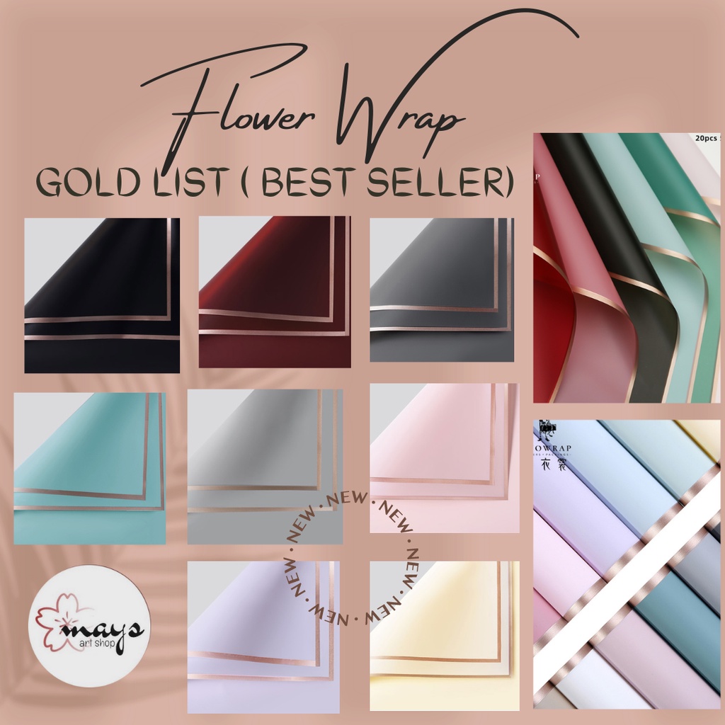 [Ecer Premium Quality] Kertas Flower Wrapping - Flower Wrap Paper Cellophane Lembaran 90ld List Line Frame kuning S
