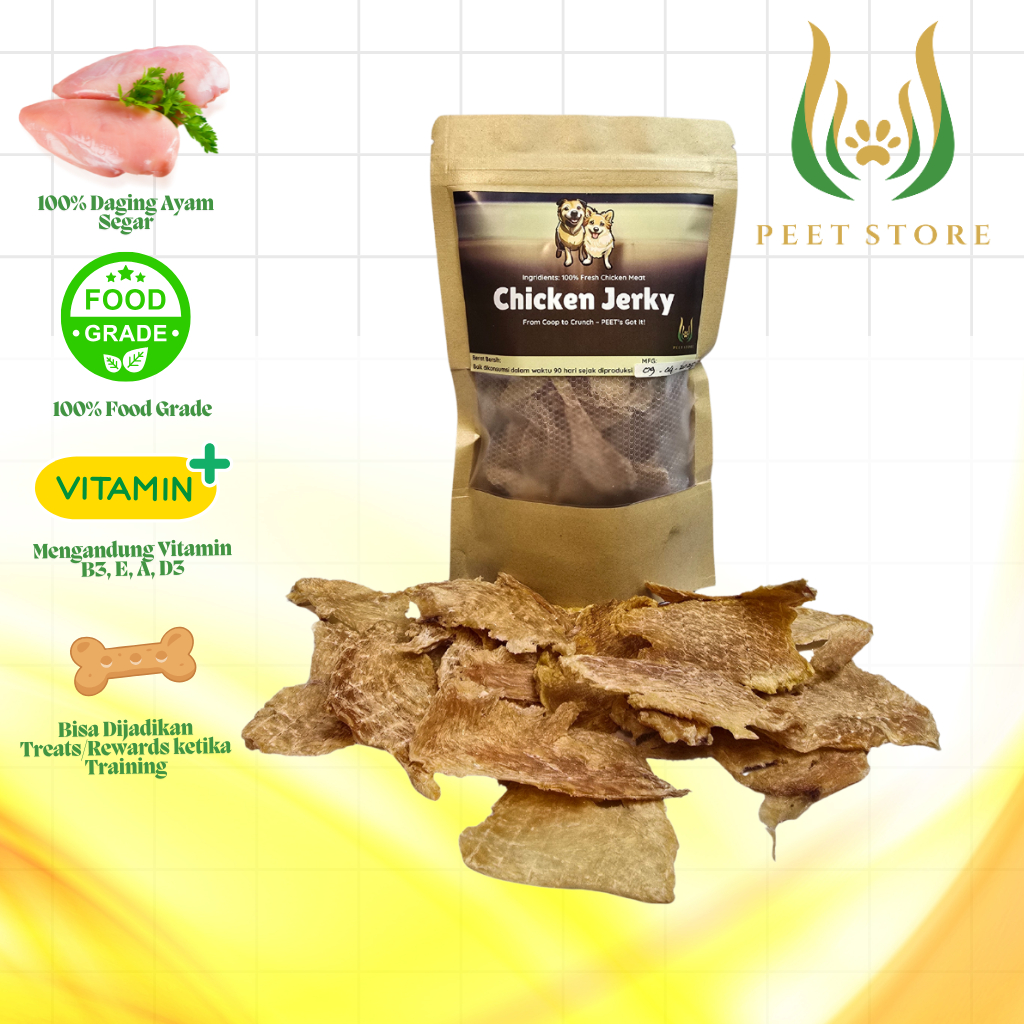 Cemilan Sehat Dada Ayam Kering Chicken Jerky Pet Reward 50g Makanan Doggy Snack Anjing & Kucing