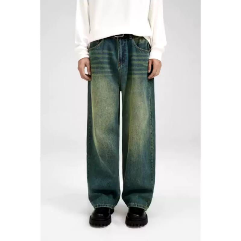 Celana jeans pria baggy pants korean style oversize loose blue and black snow jeans straight kulot panjang pria
