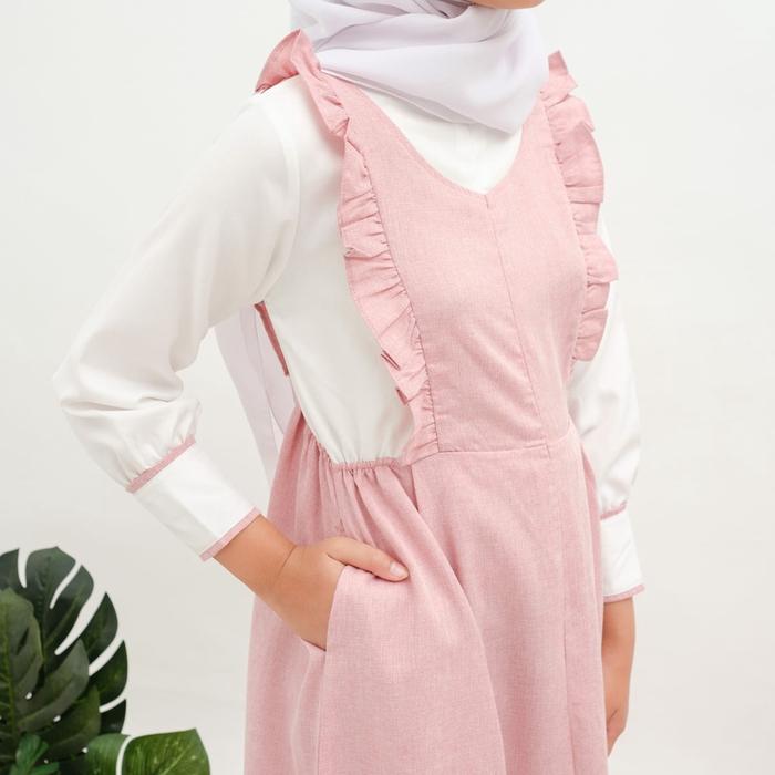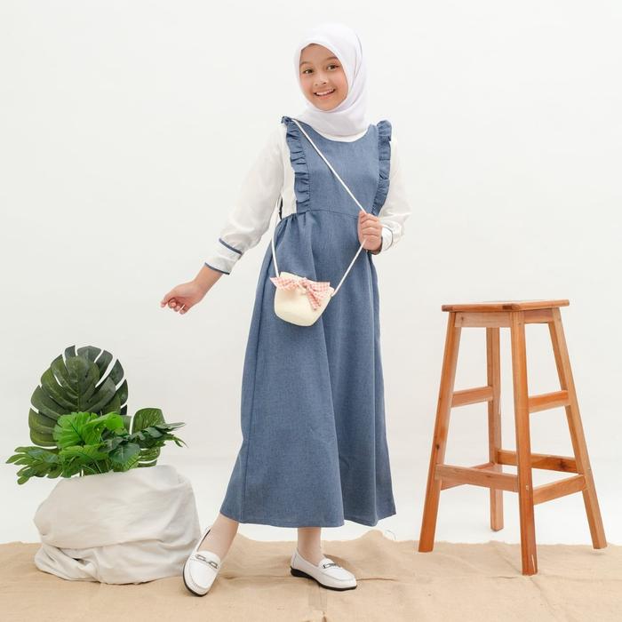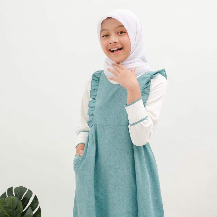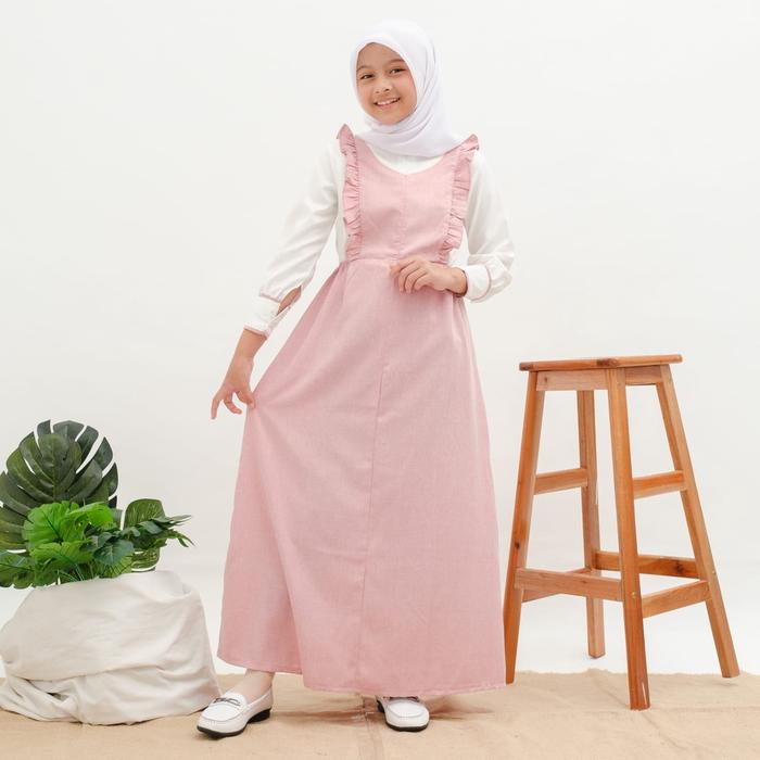 Applekidz Gamis Anak Perempuan Overall Muslim Tanggung Umur 8-15 Tahun Kirana Katun Nyaman Ruffle Dress Remaja Syari Sim