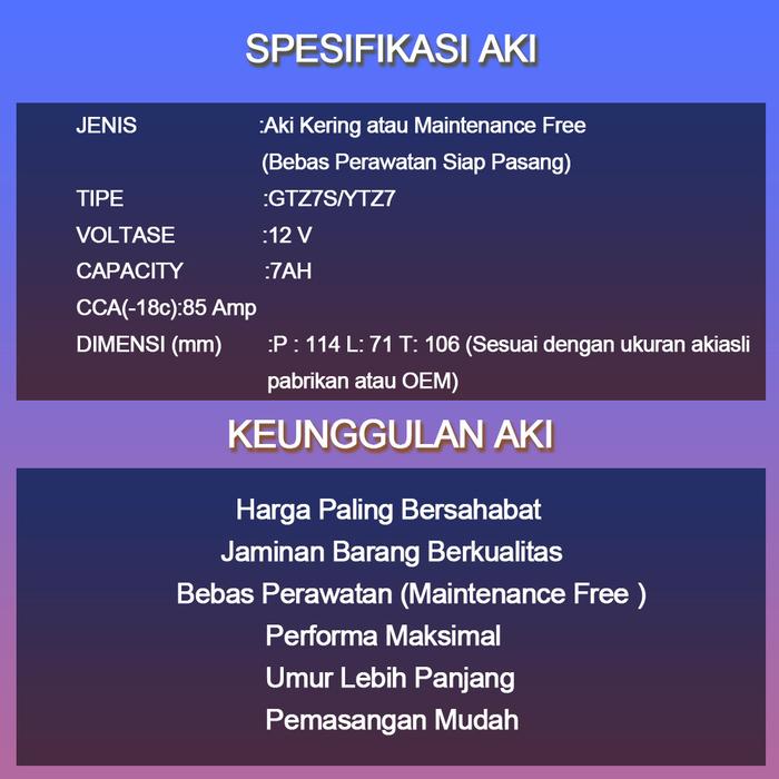 AKI MOTOR GTZ7S SUZUKI SATRIA FU SATRIA FU 150 AKI KERING MF 12V 7AH MOTORCYCLE SONIC