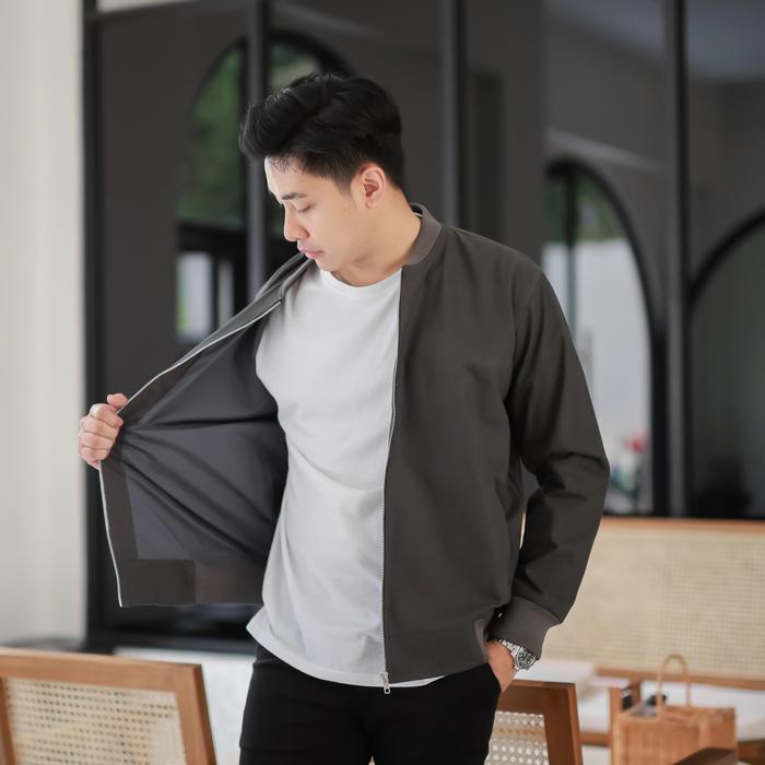 Delibra Jaket Canvas Bomber Pria Premium Lembut Nyaman Casual Distro Keren - Grey Young, M