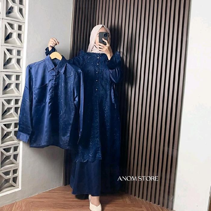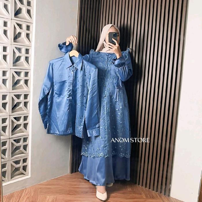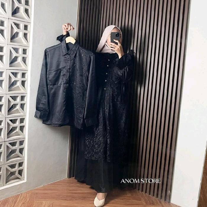 Jasmine By Anomstore - Gamis Dan Kemeja Brukat Satin Premium Dress Kondangan Sarimbit Keluarga Lebaran 2026 Terbaru Pasa