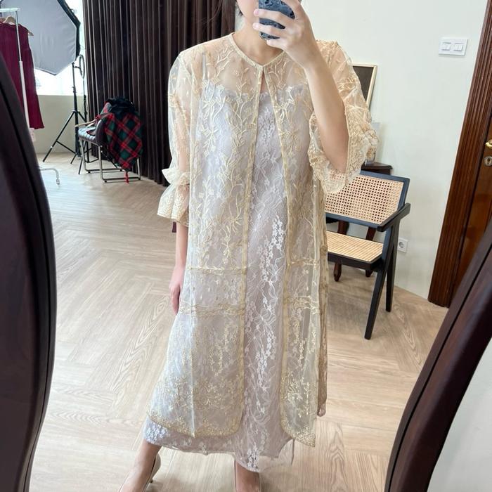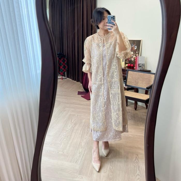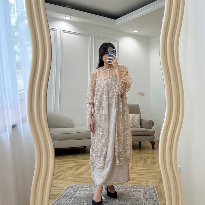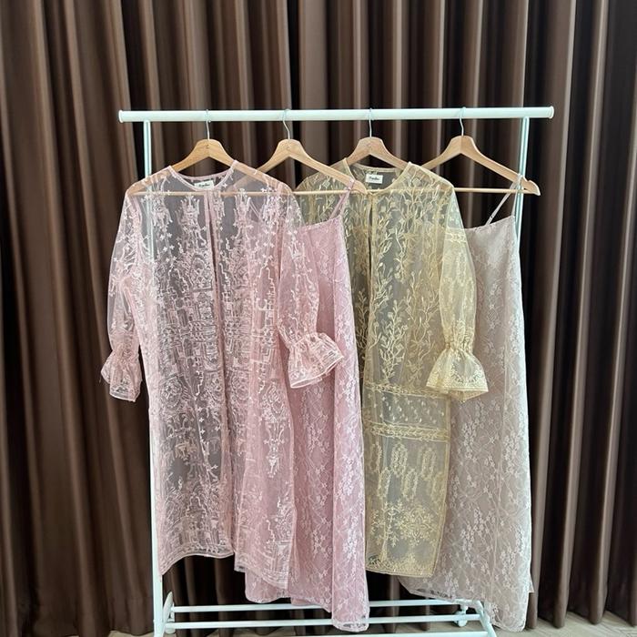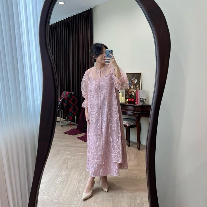 Emira Dress Dress Tile Dress Brukat Wedding Party Kondangan Inner+Outer Pesta - Pink