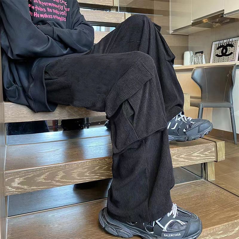 KeyBoy celana cargo pria panjang baggy corduroy straight causal stretch pants celana pinggang karet korean style