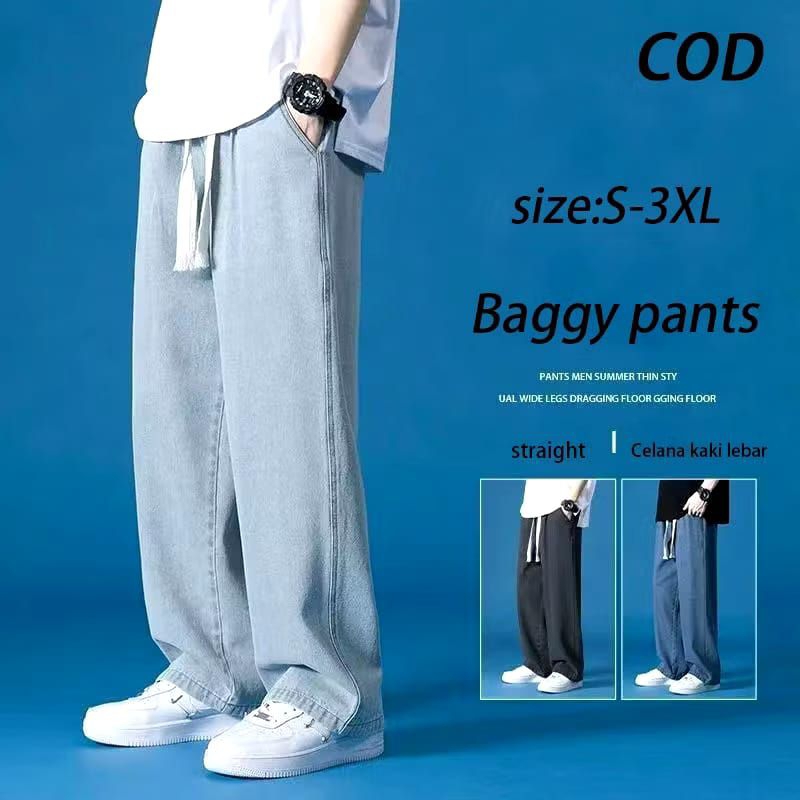 celana jeans pria celana panjang pria pinggang karet korean style straight jeans santai longgar pria oversize celan